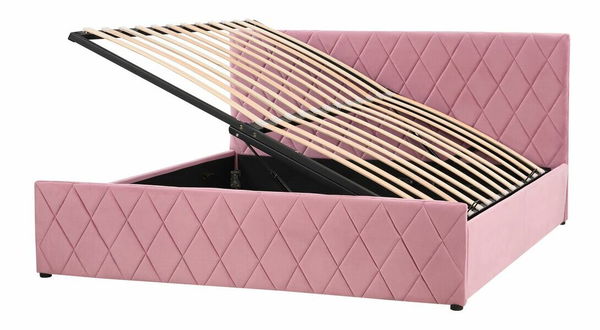 Zařiďte si ložnici nádherným a funkčním kusem nábytku. Tato postel je čalouněna luxusním sametem s ozdobným prošíváním, díky kterému vypadá elegantně, ale ne příliš okázale, takže je vhodná do ložnic zařízených v různých stylech. Součástí rámu postele je i lamelový rošt, který vaší matraci poskytne dokonalou oporu. Lamelový rošt je vybaven plynovými vzpěrami a lze jej namontovat tak, aby se otevíral na pravou nebo na levou stranu. Hluboký úložný prostor se jistě osvědčí v místnostech s malým prostorem, protože se do něj vejde ložní prádlo, polštáře, přikrývky, ale také oblečení.