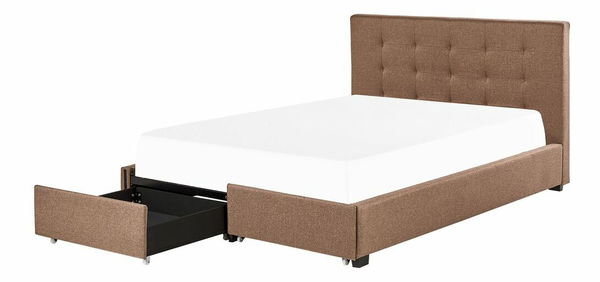 Tato výjimečná postel má elegantní design a nabízí dokonalé pohodlí. Hrubé vyztužené čelo postele s ozdobným prošíváním s knoflíčky se postará o jedinečný pocit luxusu. Čalounění z polyesterové látky se strukturou lnu v elegantním odstínu je odolné vůči opotřebení a snadno se udržuje. Rám postele je vyroben z dýhované překližky a jeho součástí jsou dvě prostorné zásuvky na kolečkách, které nabízejí dostatek úložného prostoru pro odkládání přikrývek a ložního prádla.