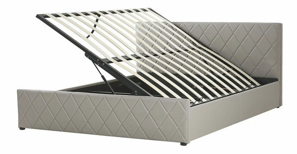 Zařiďte si ložnici nádherným a funkčním kusem nábytku. Tato postel je čalouněna luxusní umělou kůží s ozdobným prošíváním, díky které vypadá elegantně, ale ne příliš okázale, takže je vhodná do ložnic zařízených v různých stylech. Součástí rámu postele je i lamelový rošt, který vaší matraci poskytne dokonalou oporu. Lamelový rošt je vybaven plynovými vzpěrami a lze jej namontovat tak, aby se otevíral na pravou nebo na levou stranu. Hluboký úložný prostor se jistě osvědčí v místnostech s malým prostorem, protože se do něj vejde ložní prádlo, polštáře, přikrývky, ale také oblečení.