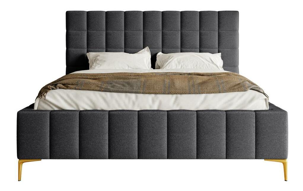 Manželská postel 180 cm Sheldona (s roštem) (s úl. prostorem) (tmavě šedá + zlatá)