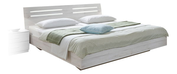 Manželská postel v moderním barevném provedení dřeva dub nabarveného bíle. Zachování kresby dřeva působí elegantně a zároveň moderně. Nábytek vyrábí certifikovaný německý výrobce, který si zakládá na vysoké jakosti svých produktů. Korpus je vyroben z kvalitní LTD.