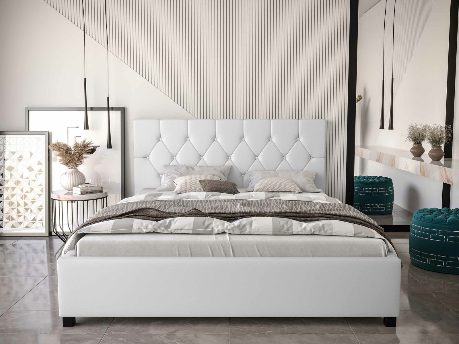 Manželská postel 180 cm Sylvie (bílá) (s roštem a úložným prostorem)