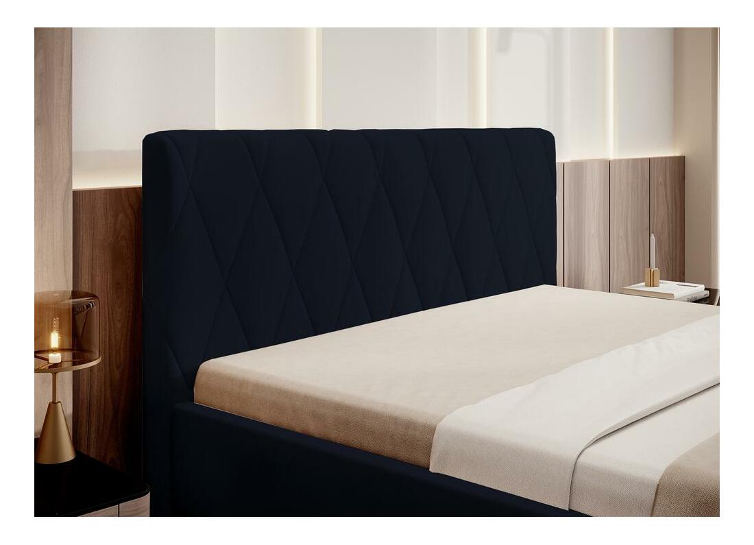 ZobrazitHledáte stylovou a praktickou postel do vaší ložnice? Vyberte si postel z kolekce a vychutnejte si módní interiér jako ze snu je tvar v současné podobě, který se bude dobře hodit do každého módního interiéru! Čalouněný korpus potažený měkkou veluru látkou vypadá krásně a vytvoří ve vaší ložnici teplou a útulnou atmosféru. Vysoké čelo postele je zdobeno geometrickým prošíváním, které efektně upoutá pozornost a potěší všechny členy domácnosti a hosty. Základem celku jsou štíhlé kvé nohy zlaté barvy Detaily produktu: plocha na spaní: 180x200 cm geometrické prošívání činí z postele skutečnou ozdobu každého interiéru, postel je čalouněna látkou Velluto 37 v námořnické modré, Velluto je hustá. samet s jemným leskem. Jemné a sametové na dotek. Vysoká odolnost proti oděru, tření a žmolkování. Nevybledne vlivem světla V nabídce i jiné barvy tohoto modelu.