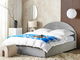 Zaoblené tvary a sametové čalounění vytvářejí design, který je ideální do ložnic zařízených v retro stylu. Postel je čalouněna sametovou látkou ve světlém odstínu šedé barvy, která je příjemná na dotek, snadno se udržuje a je trvanlivá. Díky zaoblenému čalouněnému čelu příjemně zútulní vaši ložnici. Postel má také úložný prostor, který je vhodný pro odkládání polštářů nebo ložních přikrývek.
