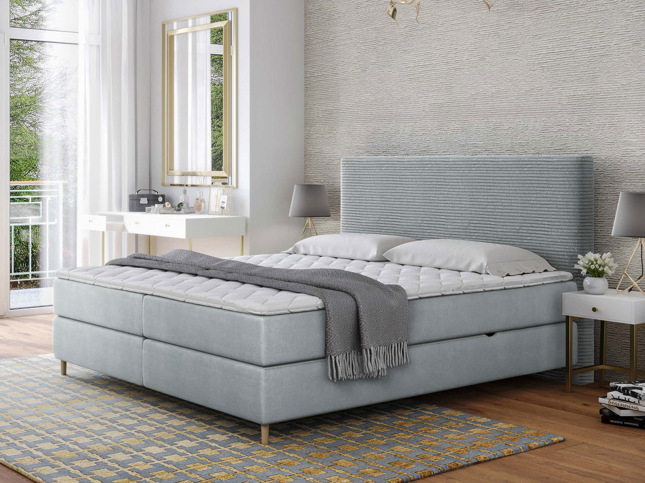 Kontinentální postel je ideální volbou pro ty, kteří hledají pohodlí a styl. Kontinentální postel Wezpi je výjimečně pohodlným řešením pro vaši ložnici. Tato elegantní postel byla vytvořena, aby vám poskytla výjimečný spánek a úžasný relaxační zážitek. Konstrukce postele je založena na masivním dřevěném rámu, který zajišťuje stabilitu. Charakteristickým znakem tohoto modelu je vrstvená konstrukce, která se skládá ze tří částí: základního boxu, pružinové matrace a pohodlného topperu. Tato kombinace poskytuje vynikající oporu vašemu tělu. Jednou z největších předností kontinentální postele Wezpi je její jedinečný vzhled. Elegantní charakter jí dodává manšestrové čalounění se sametovou texturou. Tento materiál je nejen příjemný na dotek, ale také odolný a snadno se čistí, díky čemuž bude postel v ložnici radost po mnoho let. Manšestrová postel Wezpi má navíc ozdobné čelo, které poskytuje oporu zádům a dodává pohodlí při čtení nebo sledování televize. Můžete si také vybrat správnou velikost postele a přizpůsobit ji svým individuálním potřebám. Jeho vysoká kvalita, jedinečný design a bezkonkurenční pohodlí vám zajistí skvělý spánek a odpočinek každou noc. Rozměry: 140: Délka: 209 cm, šířka: 148 cm, výška: 118 cm, plocha na spaní: 200 x 140 cm, rozměry jednoho úložného prostoru (postel má dva): délka: 196 cm, šířka: 67 cm, výška: 20 cm, 160: délka 118 cm, plocha na spaní: Rozměry: 200 x 160 cm, rozměry jednoho kontejnerového prostoru (postel má dva): délka: 196 cm, šířka: 77 cm, výška: 20 cm, 180: délka: 209 cm, šířka: 188 cm, Rozměr: 118 cm, výška: 118 cm, rozměry jednoho oddělení kontejneru (postel má dvě): délka: 196 cm, šířka: 87 cm, výška: 20 cm, Provedení: pevný rám: 16 mm silná laminovaná deska + smrkové dřevo + 5 mm HDF deska, čelo: 15 mm syrová deska + dřevo + 800G/m pružiny + polyuretanová pěna, stupeň tvrdosti: H3, vrchní matrace (topper) 5 cm: pěna se zvýšenou elasticitou, prošívaný potah, oboustranný, stupeň tvrdosti: H2, 10 cm vysoké nohy z bukového dřeva, dva kontejnery na lůžkoviny (na každé straně postele), plynové zvedá Záruka: 24 měsíců