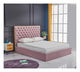Luxusní a elegantní manželská postel s prošívaným čelem a dekorativním rámem z nerezavějící oceli. Dodáváno s lamelovým roštem, bez matrace.