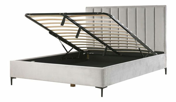 Tato krásná postel je dokonalou ozdobou každé ložnice. Díky klasickým tvarům a nádhernému čalounění se stane skutečným středobodem každého prostoru. Postel má pevný a odolný rám pokrytý vysoce kvalitní sametovou látkou, která svým krásným odleskem propůjčuje posteli luxusní vzhled. Čelo postele je ozdobeno moderním svislým prošíváním, které ladí s černýma kovovými nohama a působí minimalistickým dojmem. Pod zvedacím roštem je velký úložný prostor, který vám pomůže s uspořádáním prostoru v ložnici.