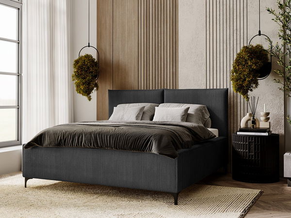 Manželská postel do ložnice Camtana zaujme svým moderním a stylovým designem. Její čalouněné záhlaví a rám s výraznou manšestrovou povrchovou úpravou jí dodávají nevšední charakter. . Jednoduchým zvednutím matrace získáte přístup k prostornému úložnému prostoru, do kterého můžete uložit ložní prádlo, přikrývky, polštáře a další doplňky.