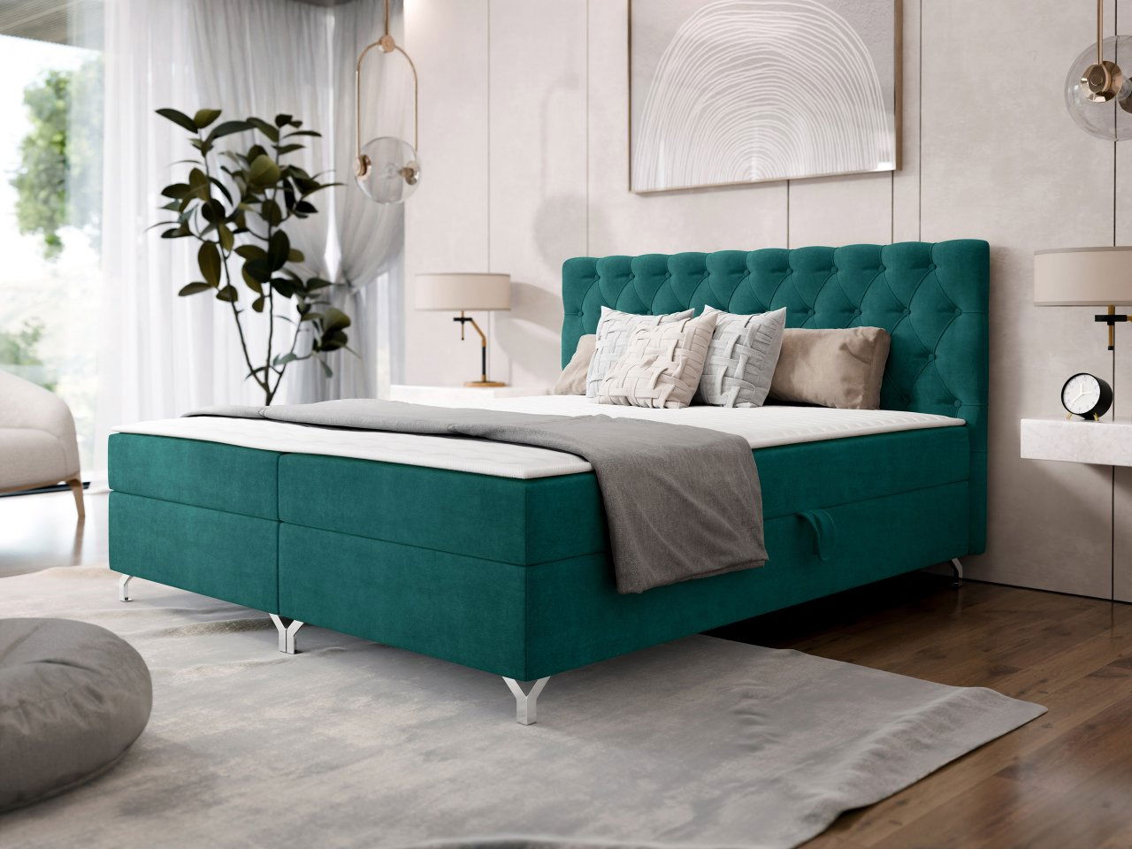 - Manželská postel 200 cm Jenaks 2 (tmavě zelená) (s roštem a matrací) (s úl. prostorem)