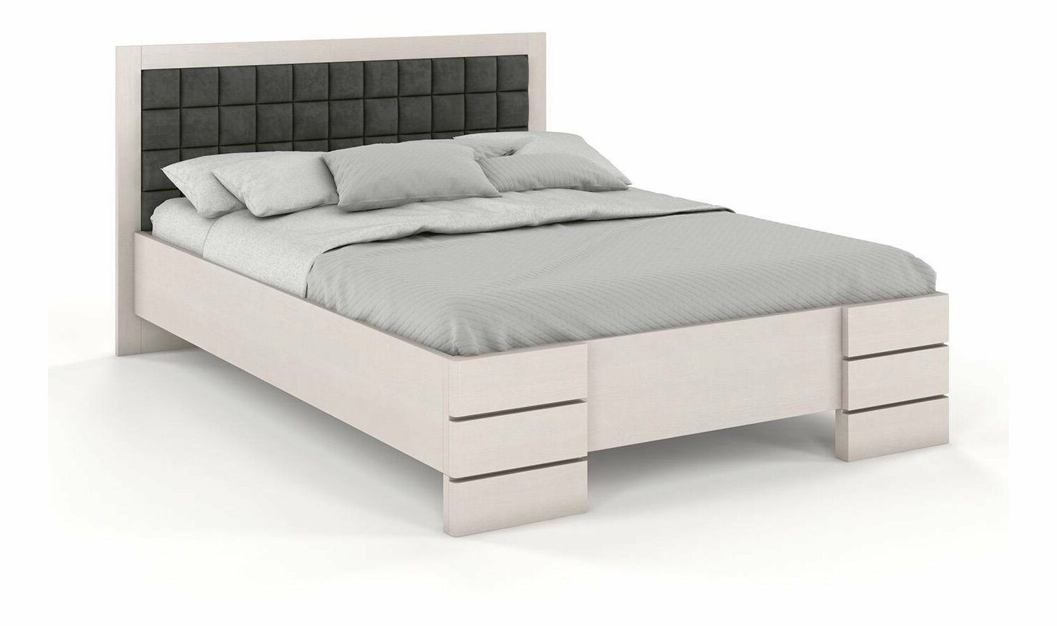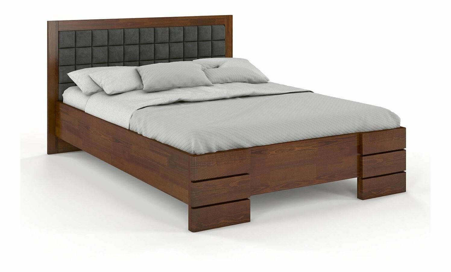 Manželská postel 200 cm Naturlig Storhamar High (borovice) je moderní a minimalistická postel s vysokým čelem prošívaným do zajímavého designu. Postel je vyšší než její základní model, čímž zajišťuje snadné vstávání. Pevná a stabilní konstrukce postele je vyrobena z borovicového dřeva a zesílená šrouby a nosníkem "pátá noha". Konstrukce je vyrobena z podélně lepených desek, které minimalizují počet uzlů na vnější straně postele. Postel je lakována moderním vysoce kvalitním lakem na bázi vody, který zvyšuje odolnost proti poškrábání a běžně používaným čistícím prostředkům. Produkt má záruku až 8 let. Postel se dodává bez roštu a matrace, které si můžete vybrat z našeho internetového obchodu. Postel si můžete vybrat v různých barvách moření a ve velikostech 160, 180 a 200 cm. Dostupná je také verze s prodlouženou délkou 220 cm.
