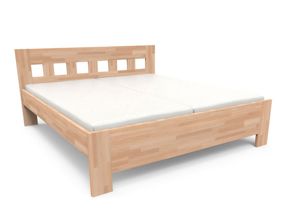 Manželská postel Jana SENIOR vyrobená z masivního dřeva buk nebo dub (parketový design) dodá Vaší ložnici tu správnou atmosféru vhodnou na klidné odpočívání. Vnitřní rozměry pro matrace jsou 180 x 210 cm. Čelo postele je zdobené otvory, tloušťka masivu (desky) je 30 mm, výška čela při hlavě je 90 cm a po horní hranu bočnice je výška 45 cm. Postel je vybavena vnitřním výškově nastavitelným kováním, slouží k upravení výšky roštu a padne vhod, pokud máte vysoký nebo naopak tenčí (nižší) typ matrace. V ceně postele není zahrnut matrace ani rošt, ale můžete si je zakoupit v našem obchodě. Postel se vyrábí také v délce 220 cm.