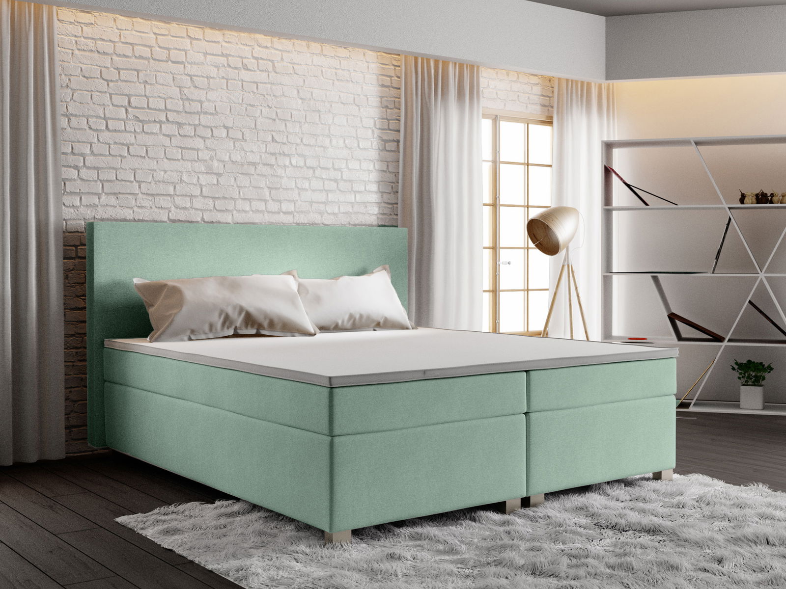 Manželská postel Boxspring 140 cm - Simon Comfort (mátová) je luxusní postel, která vám poskytne dokonalý komfort při spánku. Postel obsahuje matraci s výbornou podpůrnou funkcí a zajistí vám zdravé a pohodlné spaní. atmosféru vaší ložnice. S výškou 105 cm a šířkou 140 cm poskytuje dostatek prostoru pro dva dospělé lidi. Součástí postele není úložný prostor, což znamená, že vám nezabírá moc místa v pokoji. místnosti. Pokud hledáte pohodlnou a luxusní postel, která skvěle zapadne do vašeho interiéru, Manželská postel Boxspring 140 cm - Simon Comfort (mátová) je tou správnou volbou pro vás.