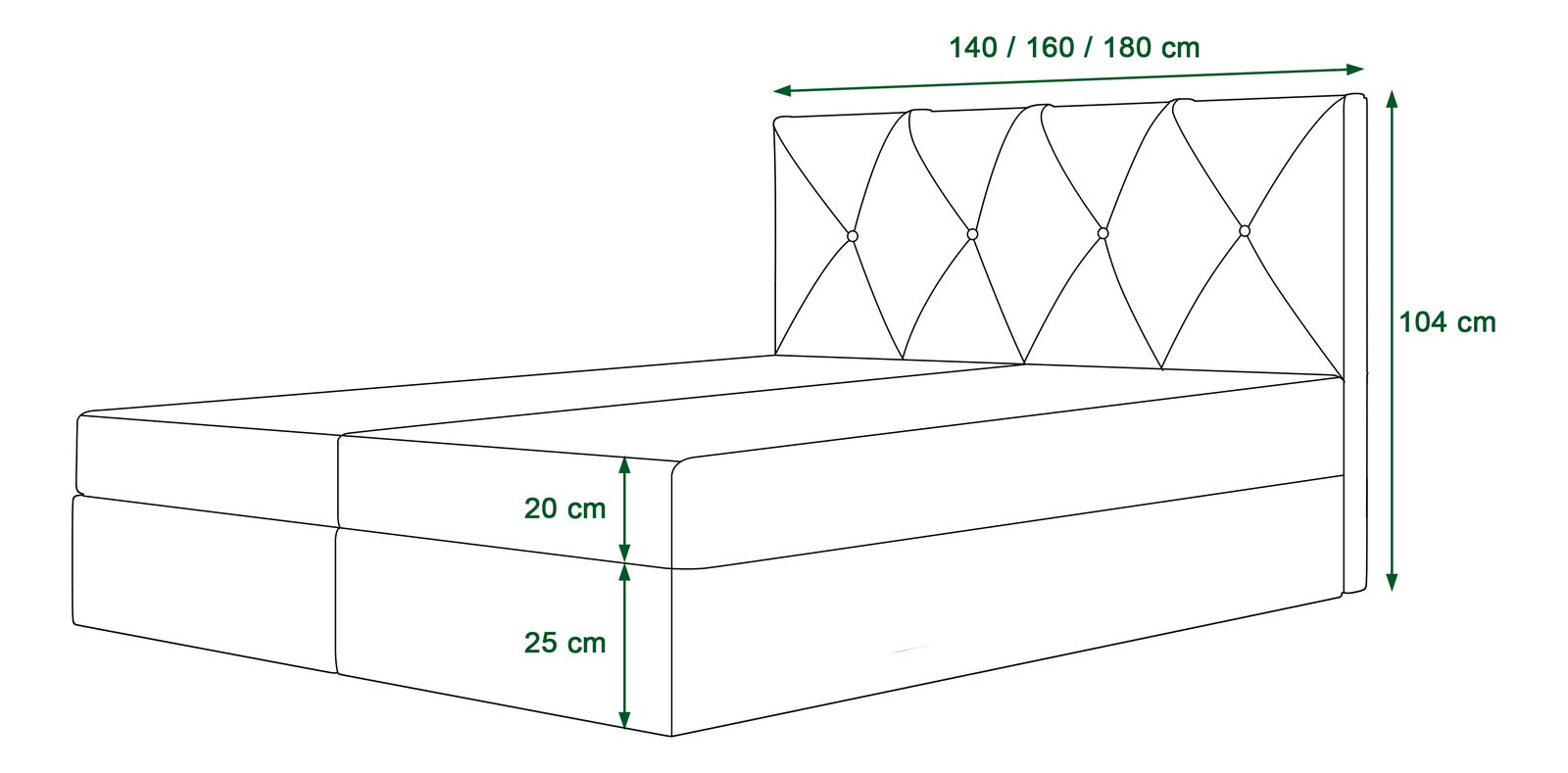 ZobrazitManželská postel Boxspring 160 cm - Athena Comfort v béžové barvě je ideálním řešením pro ty, kteří hledají spojení pohodlí a skvělého designu. Tato postel má díky své výšce 104 cm a rozměrům 160 x 207 cm dostatečně velkou plochu pro dva lidi. kvalitních materiálů a má zahrnutou matraci, která zaručuje optimální podporu pro vaše tělo během spánku. Kromě toho tato postel má úložný prostor, který vám umožní uchovat vaše věci na bezpečném místě a udržet váš prostor čistý a uklizený.
