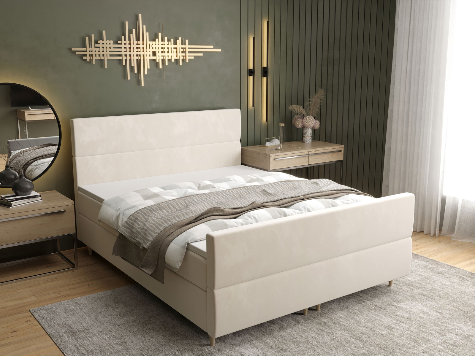 ZobrazitManželská postel Boxspring 160 cm - Flu Plus Comfort je luxusní postel, která Vám poskytne nejvyšší komfort a pohodlí při každém spánku. Postel je vyrobena z kvalitních materiálů a má světle béžovou barvu, která se hodí do každé ložnice. Součástí postele je i matrace, která je uzpůsobena pro maximální komfort. Kromě toho, postel disponuje také úložným prostorem, kde můžete uložit své věci a ušetřit místo v ložnici. Rozměry postele jsou výška 114 cm, šířka 160 cm a hloubka 207 cm – ideální pro manželské páry nebo jednotlivce, kteří hledají kvalitní a pohodlný spánek. Objednejte si Manželskou postel Boxspring 160 cm - Flu Plus Comfort ještě dnes a užijte si každou noc jako v hotelu!