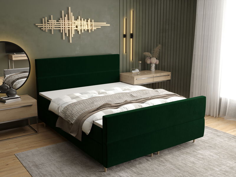 ZobrazitManželská postel Boxspring 160 cm - Flu Plus Comfort (tmavě zelená) s matrací a úložným prostorem je skvělým řešením pro ty, kteří hledají pohodlné, ale zároveň i praktické řešení pro svoji ložnici. S výškou 114 cm, šířkou 160 cm a hloubkou 207 cm je dostatečně velká pro pohodlný spánek dvou osob. Tmavě zelená barva Boxspringu přidává do interiéru špetku elegance a moderního vzhledu. Postel je vybavena kvalitní matrací Itaka 10, která je zdrojem zdravého a kvalitního spánku. Kromě toho disponuje také praktickým úložným prostorem, ve kterém si můžete uložit ložní prádlo, polštáře nebo jiné věci. Celkově se jedná o vynikající nákup s výborným poměrem cena/výkon, který vám zaručí pohodlný a kvalitní spánek, spolu s praktickým úložným prostorem.