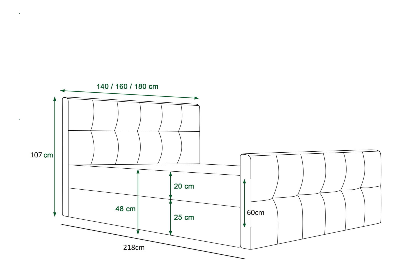 ZobrazitTato postel se vyznačuje luxusním designem a výjimečnou jemností v každém detailu. Prostorná kontinentální postel je k dispozici ve třech velikostech: 140/160/180 cm x 200 cm. Vysoká matrace vyrobená z kvalitní pěny a pružin Bonnell navíc zvyšuje komfort spánku a zaručuje měkkost a odolnost vůči prohloubeninám. Postel vybavená dvěma kontejnery vám umožní uložit ložní prádlo a jiné věci, pro které nenajdete místo. Dostupná iv jiných barvách.
