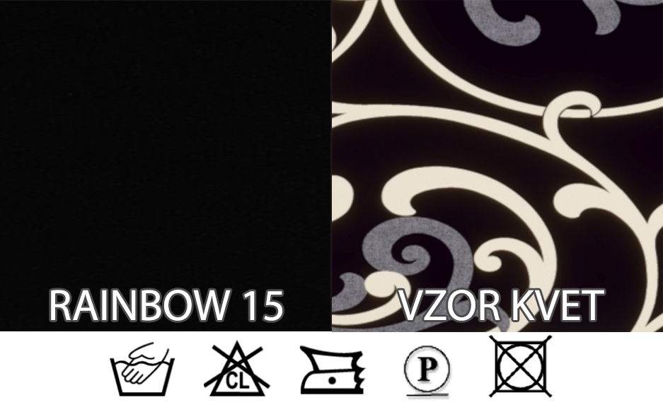 Potahová látka Rainbow je jemná, na dotek příjemná nenáročná na údržbu. Nevystavujte látku vysokým teplotám – nežehlete, neperte na mokro a nepoužívejte prostředky k bělení. Péče a čištění pouze se speciálními prostředky pro čalouněný nábytek.