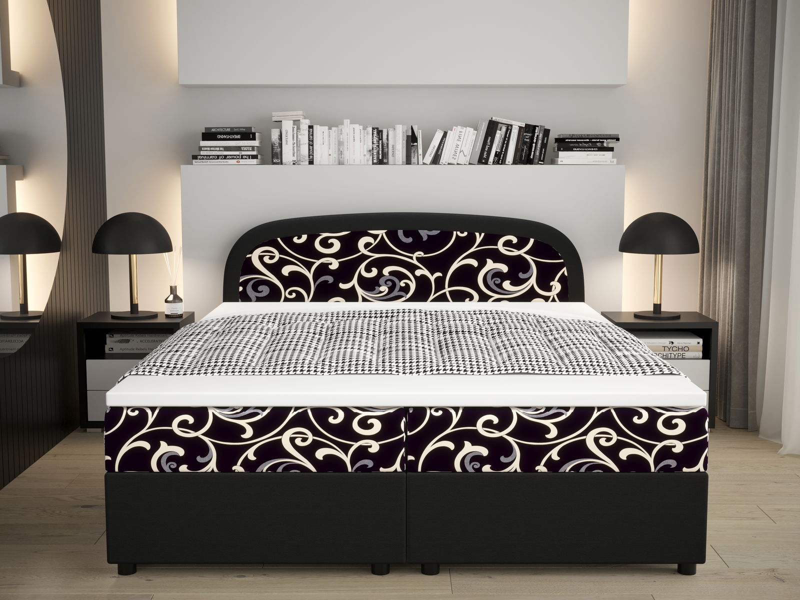 Manželská postel Boxspring 180 cm Brick (černá + vzor květ) (s matrací a úložným prostorem)