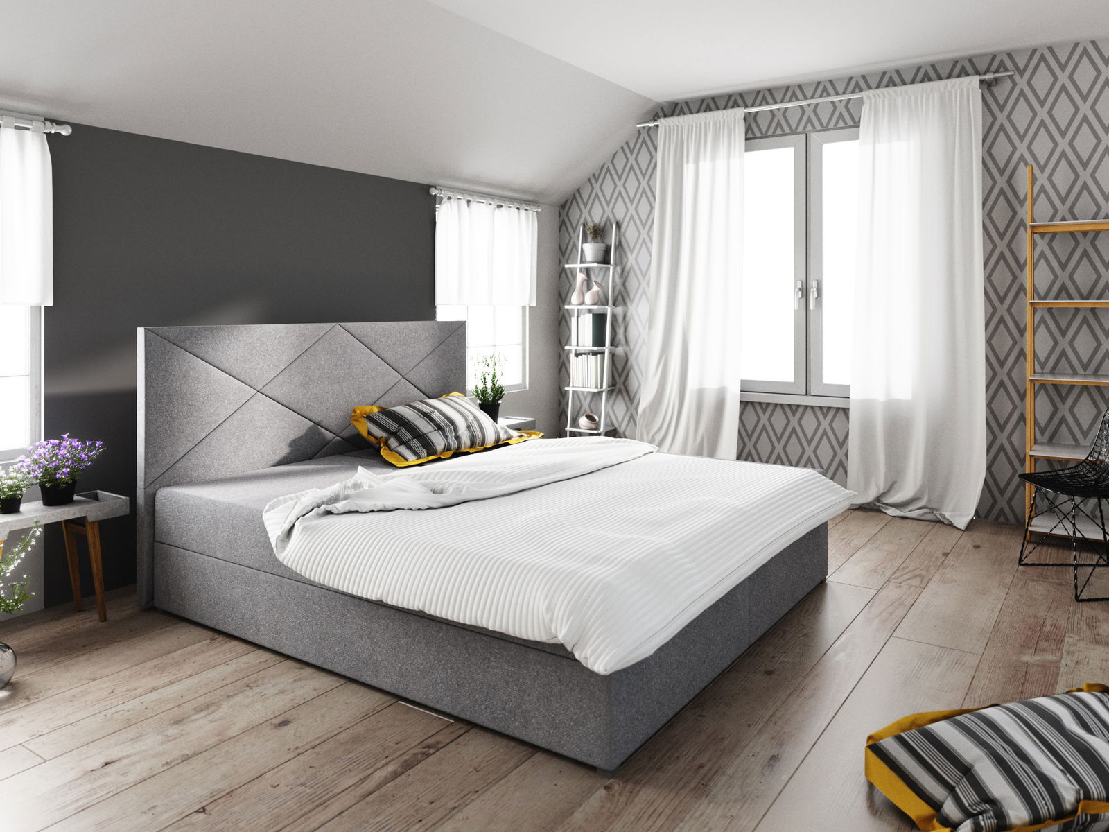 ZobrazitTato postel se vyznačuje luxusním designem a výjimečnou jemností v každém detailu. Prostorná kontinentální postel je k dispozici ve třech velikostech: 140/160/180 cm x 200 cm. Vysoká matrace vyrobená z kvalitní pěny a pružin Bonnell navíc zvyšuje komfort spánku a zaručuje měkkost a odolnost vůči prohloubeninám. Postel vybavená dvěma kontejnery vám umožní uložit ložní prádlo a jiné věci, pro které nenajdete místo. Dostupná iv jiných barvách.