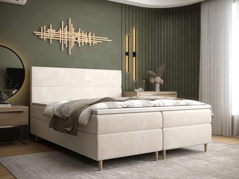ZobrazitManželská postel Boxspring 180 cm - Flu Comfort (světlobéžová) s matrací a úložným prostorem je ideální pro výjimečný spánek. S výškou 114 cm, šířkou 180 cm a hloubkou 207 cm poskytuje dostačující prostor pro dva lidi ke spánku. Tato postel obsahuje matraci ve velikosti 180x200 cm, která zajistí pohodlný a zdravý spánek. Kromě toho, postel je vybavena praktickým úložným prostorem pro uložení vašich věcí. Manželská postel Boxspring 180 cm - Flu Comfort (světlobéžová) s matrací a úložným prostorem je vyrobena z kvalitních materiálů a poskytuje luxusní vzhled vašemu interiéru. Tato postel je skvělou volbou pro ty, kteří ocení dokonalý spánek a eleganci.