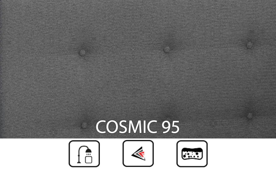 Potahová látka Cosmic se vyznačuje viditelným vzorem, na dotek hladký. Tkanina je měkká a příjemná na dotek. Vyrobená ze 100% PES. Jednoduchá na údržbu.