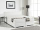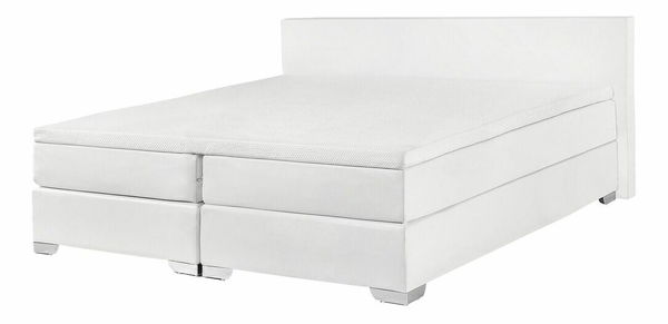Tato kontinentální postel, která se výborně hodí do moderních a tradičně zařízených ložnic, se stane pohodlným středem vaší ložnice. Pevná konstrukce je vyrobena ze dřeva a je doplněna flexibilními pružinami, které poskytují ideální základ pro matraci. Jednoduchý design chromovaných nohou dokonale zvýrazňuje klasické bílé čalounění z umělé kůže. Tato postel se dodává s pružinovou matrací s úrovní tvrdosti H2. Jeho ergonomický design zaručuje skvělou oporu pro vaši páteř.
