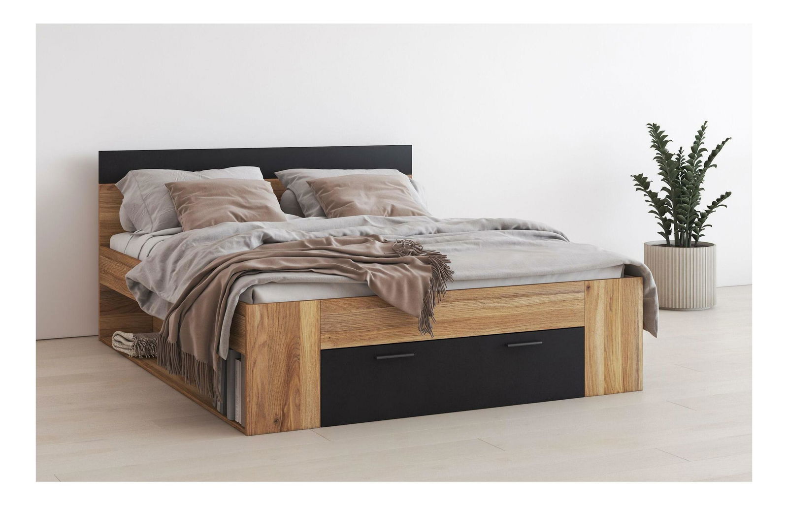 Manželská postel Gamma 160 (dub + černá)