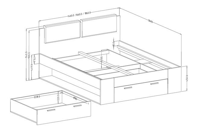 Manželská postel Glynda vznikla spojením kvalitního materiálu a moderního designu, které vám zaručí spokojený spánek. Konstrukce poskytuje i úložný prostor pod postelí. Nabízíme také dva noční stolky ve stejném barevném provedení k dokoupení.