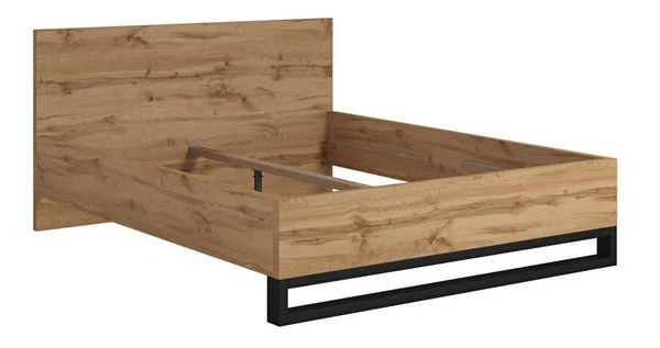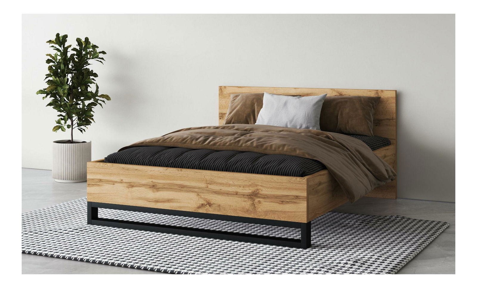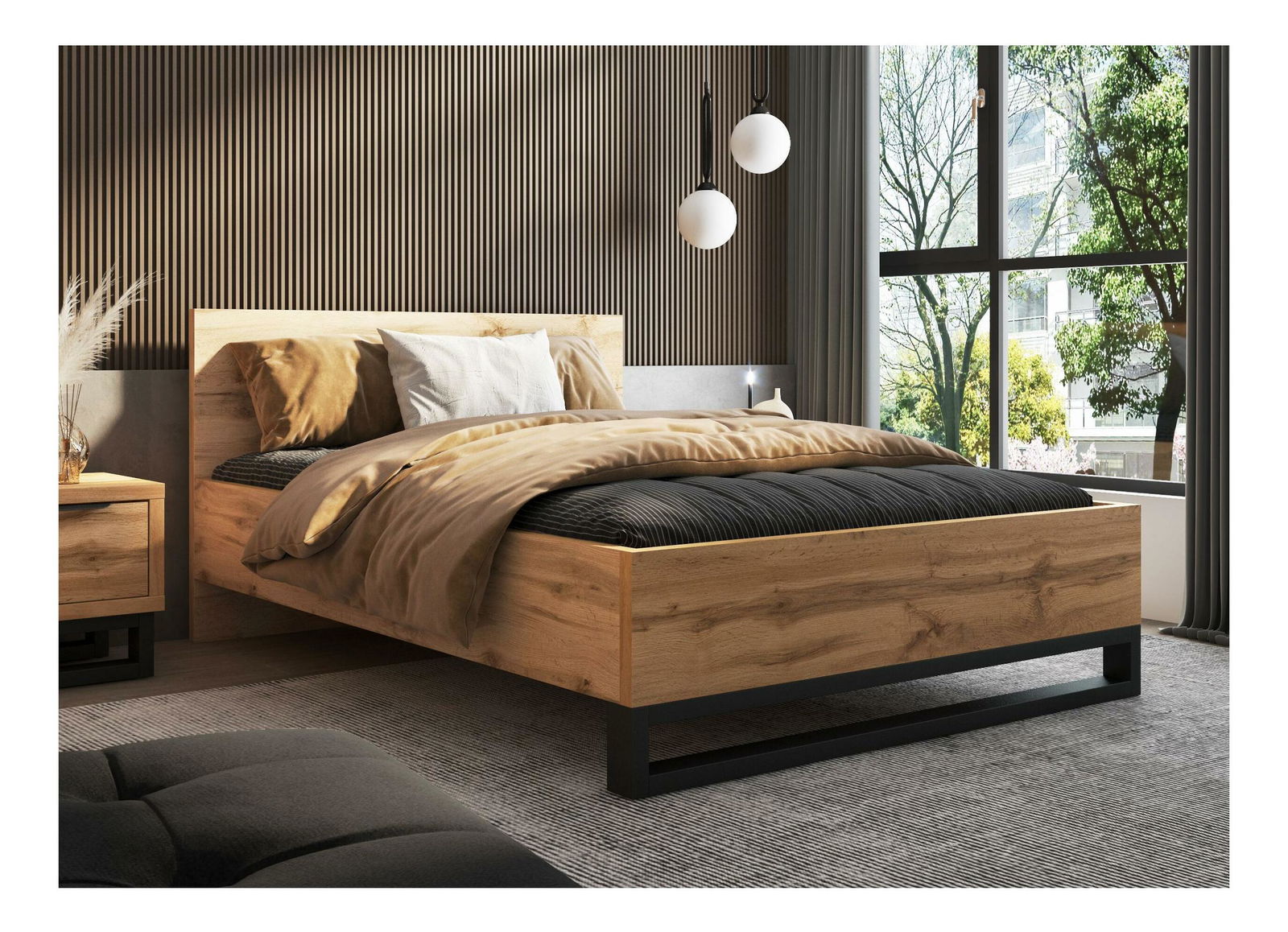 Manželská postel - Helles 140 (dub wotan + černá) - Pohodlná manželská postel s rafinovaným, čistým designem, ideální pro sladké sny. Překližka se vzorem dubu wotan a štíhlé, minimalistické linie dodávají této posteli moderní a zároveň útulný vzhled.