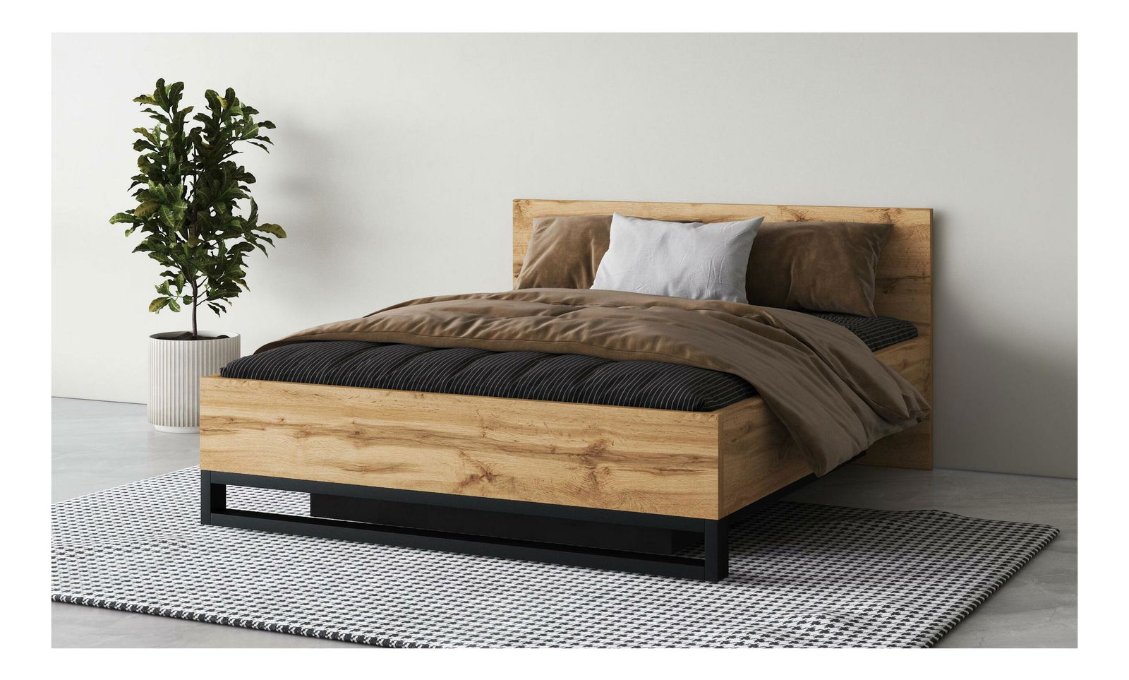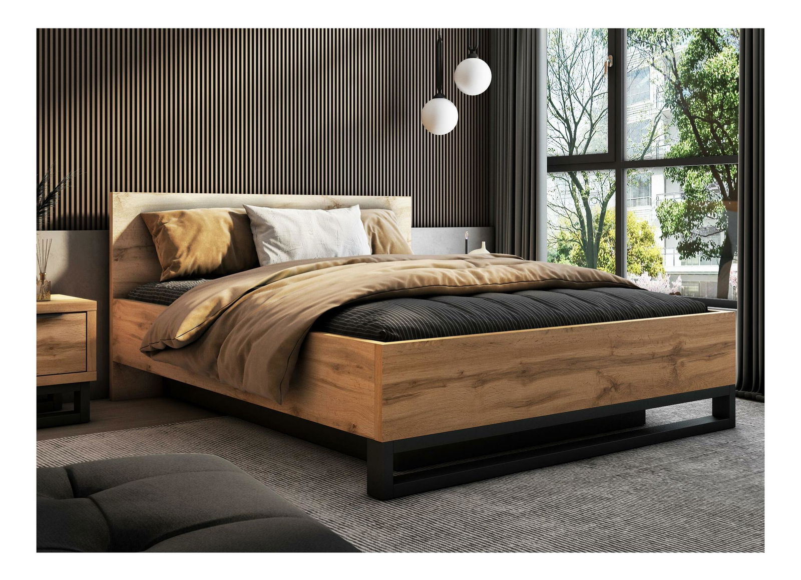 Manželská postel - Helles 160 (dub wotan + černá) (s úl. prostorem) - Pohodlná manželská postel s rafinovaným, čistým designem, ideální pro sladké sny. Překližka se vzorem dubu wotan a štíhlé minimalistické linie dodávají této posteli moderní a zároveň útulný vzhled.