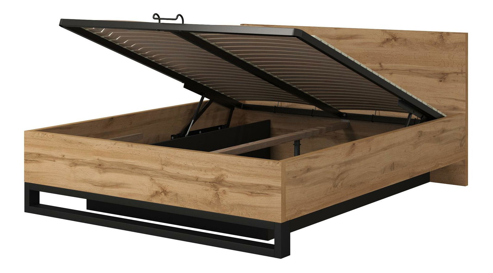 Manželská postel Helles 160 (dub wotan + černá) (s roštem) (s úložným prostorem)