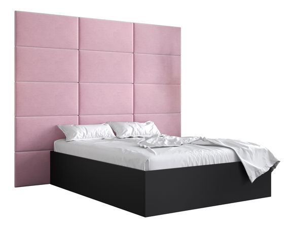 Manželská postel s čalouněným čelem 160 cm Brittany 1 (černá matná + růžová) (s roštem)