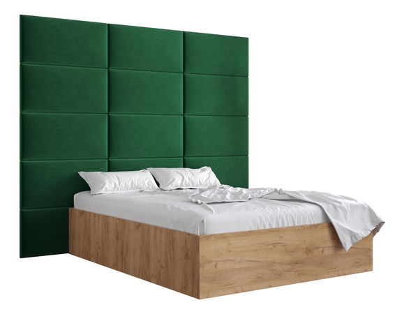 Manželská postel s čalouněným čelem 160 cm Brittany 1 (dub craft zlatý + zelená) (s roštem)