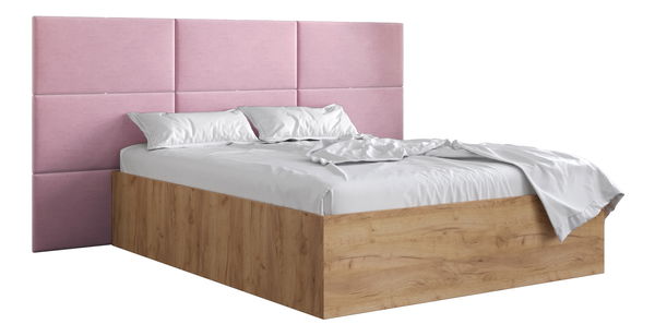 Manželská postel s čalouněným čelem 160 cm Brittany 2 (dub craft zlatý + růžová) (s roštem)
