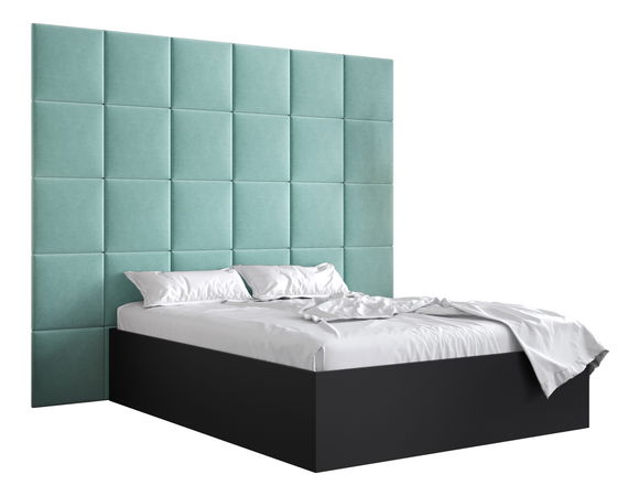 Manželská postel s čalouněným čelem 160 cm Brittany 3 (černá matná + mátová) (s roštem)