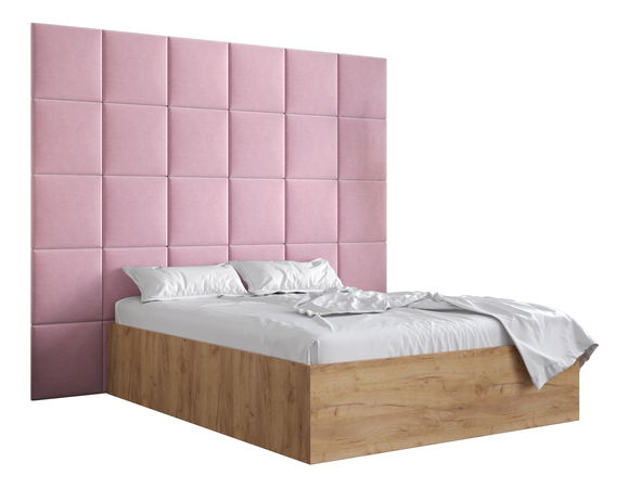 Manželská postel s čalouněným čelem 160 cm Brittany 3 (dub craft zlatý + růžová) (s roštem)