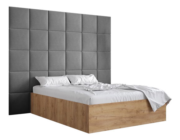 Manželská postel s čalouněným čelem 160 cm Brittany 3 (dub craft zlatý + šedá) (s roštem)
