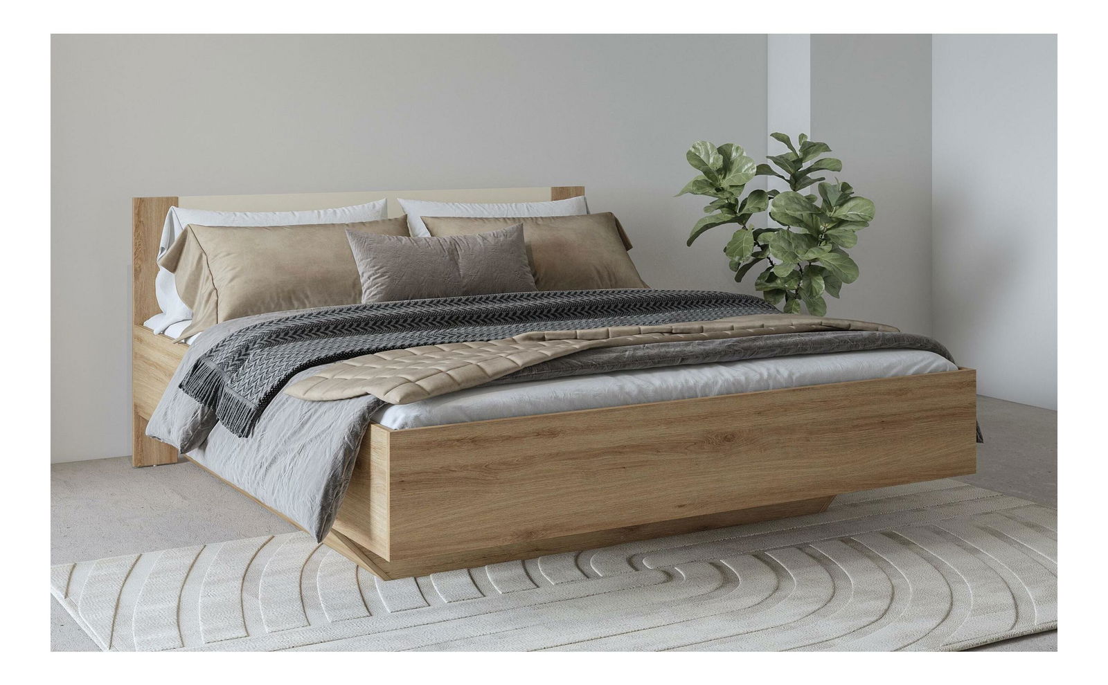 Manželská postel- Verdeene 160 (divoký dub + béžová) - Pohodlná manželská postel s rafinovaným, čistým designem, ideální pro sladké sny. Díky svému jednobarevnému provedení snadno zapadne do každého moderního interiéru a štíhlé minimalistické linie dodávají této posteli moderní a zároveň útulný vzhled.