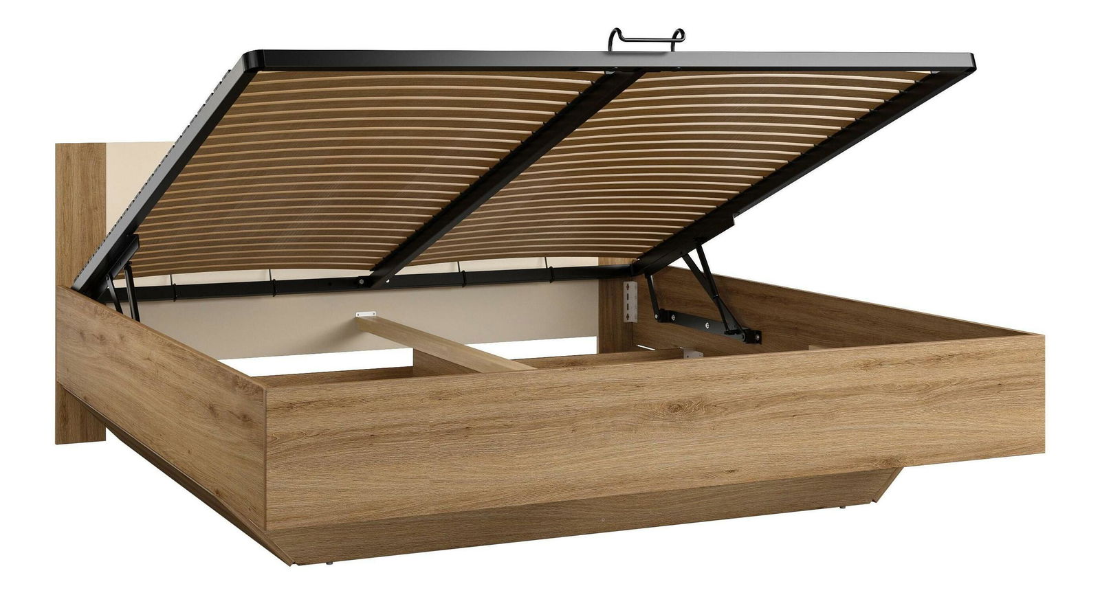 - Manželská postel Verdeene 180 (divoký dub + béžová) (s roštem) (s úložným prostorem)