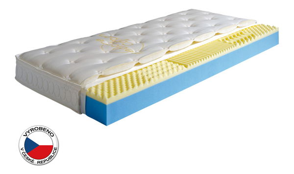 Luxusní pětizónová matrace, která díky zvolenému profilování jádra umožňuje dokonalé uvolnění a relaxaci lidského těla. Vysoká nosnost matrace ze studené pěny COOLFLEX® dodá matraci optimální tuhost, elasticitu a životnost, která je srovnatelná s lůžky vyrobených z latexových pěn. Pro zvýšení komfortu je ložná plocha tvořena viscoelastickou pěnou VISCOFOAM®, která je profilována do pěti anatomických zón. Materiál VISCOFOAM® reaguje na tělesnou teplotu, která mění jeho vlastnosti. Viscoelastická pěna se podá tělu a stabilizuje ho v optimální poloze, což přispívá ke klidnému spánku.