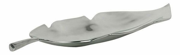 Tato dekorativní mísa je praktickým doplňkem do interiéru, který krásně vynikne jako ozdoba na jídelním stole. Je vyrobena z lehkého a odolného hliníku v lesklém stříbrném provedení, díky kterému vypadá elegantně. Klasický tvar listu a zaoblené linie z ní dělají krásnou ozdobu ideální do interiérů zařízených v jakémkoli stylu.