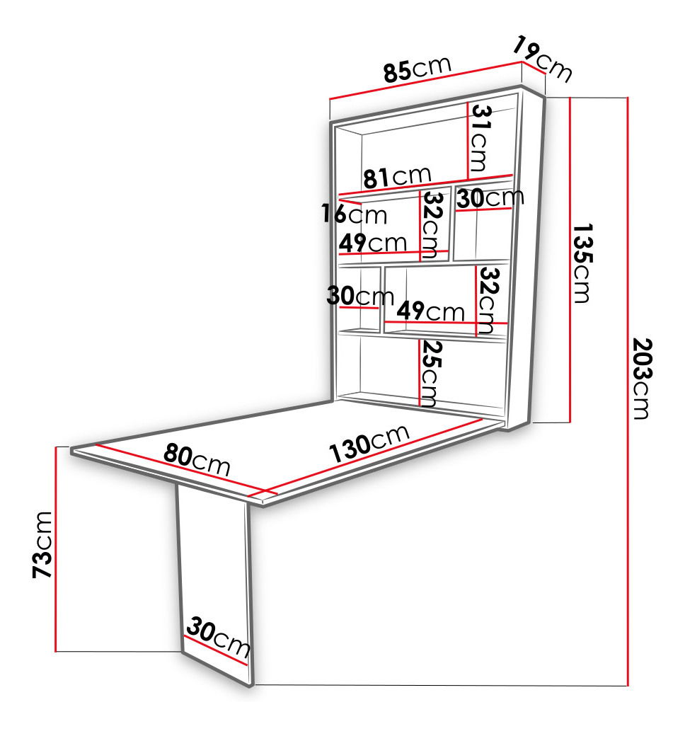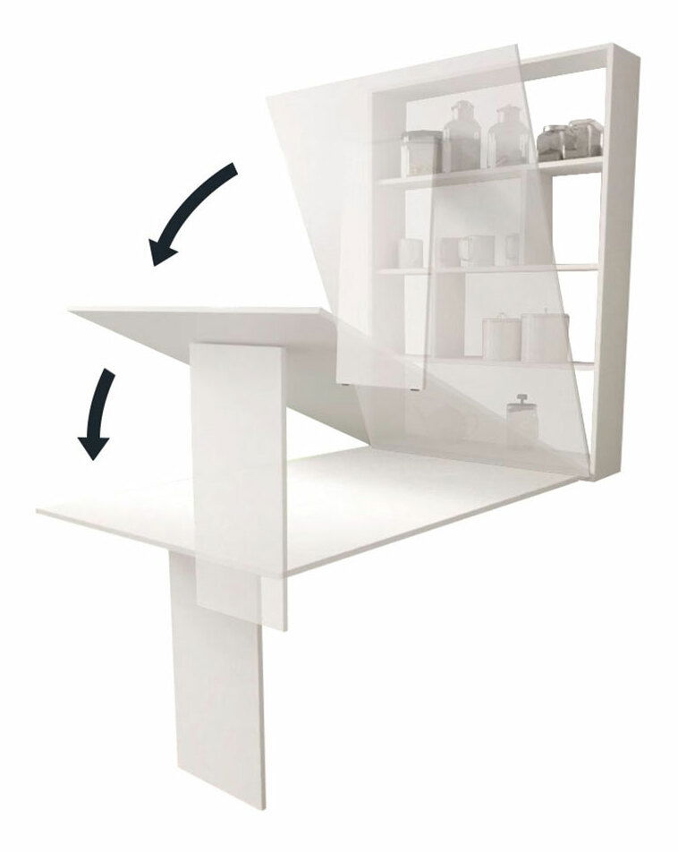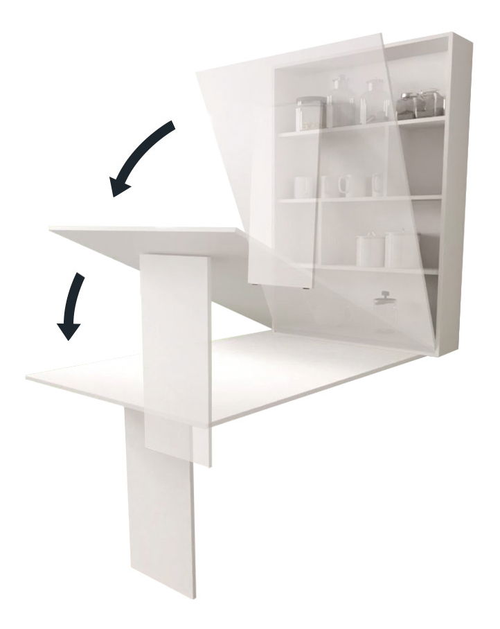 Máte rádi inovativní řešení, díky kterým je místnost funkčnější? Pokud je tomu tak, máme pro vás skvělou nabídku – moderní nástěnný stůl Elvana. Fenomén tohoto stolu je, že jej lze složit a skrýt. Po složeném stole vypadá jako závěsná skříň, která poskytuje více svobody a prostoru v místnosti. Avšak v době oběda nebo když vás mají hosté navštívit, můžete stůl připravit rychlým a snadným způsobem. Stůl lze rozložit pomocí nábytkových pantů. Na druhé straně je blokáda svršku způsobena použitými háčky. Výběrem modelu Elvana navíc získáte nejen praktický stůl s možností složení, ale také ozdobné police, které se stanou viditelnými po rozložení nábytku.