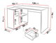 16 mm silná laminovaná dřevotříska, plastové rukojeti (délka 128 mm), nožičky (plastové nožičky na levé straně stolu - stříbrné, na pravé straně - kluzné), kuličkové ložiskové kluzáky H-17, standardní panty fi35, stůl nemá - zákazník si vybere jednu z možností během montáže: rovně nebo pod úhlem 90°, stůl je univerzální: možnost sestavit stranu se skříňkami na levé nebo pravé straně