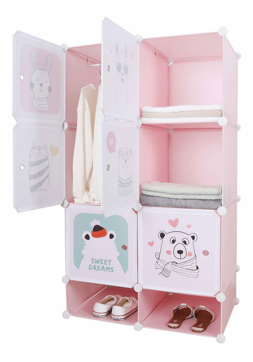 Modulární dětská skříňka Atlas okouzlí nejednu ratolest. Sestává z 8 modulů. Disponuje dvířky s pohádkovým motivem, který přinese fantazii do dětského pokoje. Součástí balení je i závěsný tyč na oblečení na oblečení. Skříňka je vyrobena z plastu přičemž výztuhu tvoří kov, díky tomu je jednoduchá na údržbu.