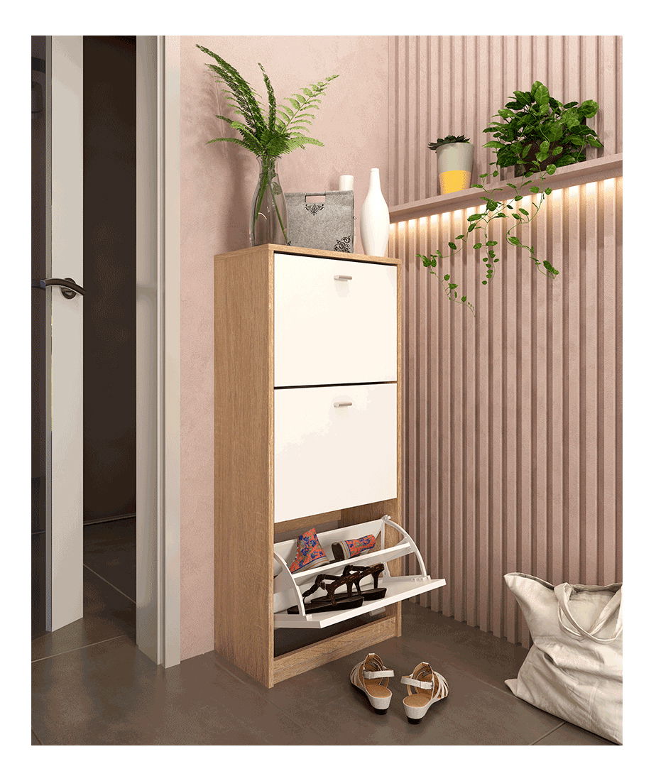 Botník VERITY TYP 2 je ideálním doplňkem pro vaši předsíň. S třířadým uspořádáním a výrobou z kvalitní dřevotřísky DTD v provedení dub sonoma a bílá, tento botník je nejen praktický, ale také stylový. Uložte do něj velké i malé boty, čímž si uděláte prostor při vstupu do domácnosti. S výklopným systémem je tento botník snadno přístupný a umožňuje vám organizovat vaše boty a denní maličkosti. Jednoduchý design se hodí do každého interiéru a skrývá v sobě funkčnost a praktičnost. S botníkem VERITY TYP 2 získáte dokonalé řešení pro uspořádání bot ve vaší domácnosti.