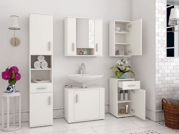 Dodejte své koupelně moderní a čistý vzhled s koupelnovou sestavou Leah 1 v elegantním bílém matném provedení. Sestava je navržena tak, aby byla funkční, kompaktní a estetická zároveň - ideální volba i pro menší koupelny. Skříňka pod umyvadlo nabízí dostatek místa pro běžné hygienické potřeby, horní skříňka se zrcadlem kombinuje praktičnost s vizuálním zvětšením prostoru a vysoká skříňka poskytuje další úložný prostor pro ručníky či čistící prostředky.