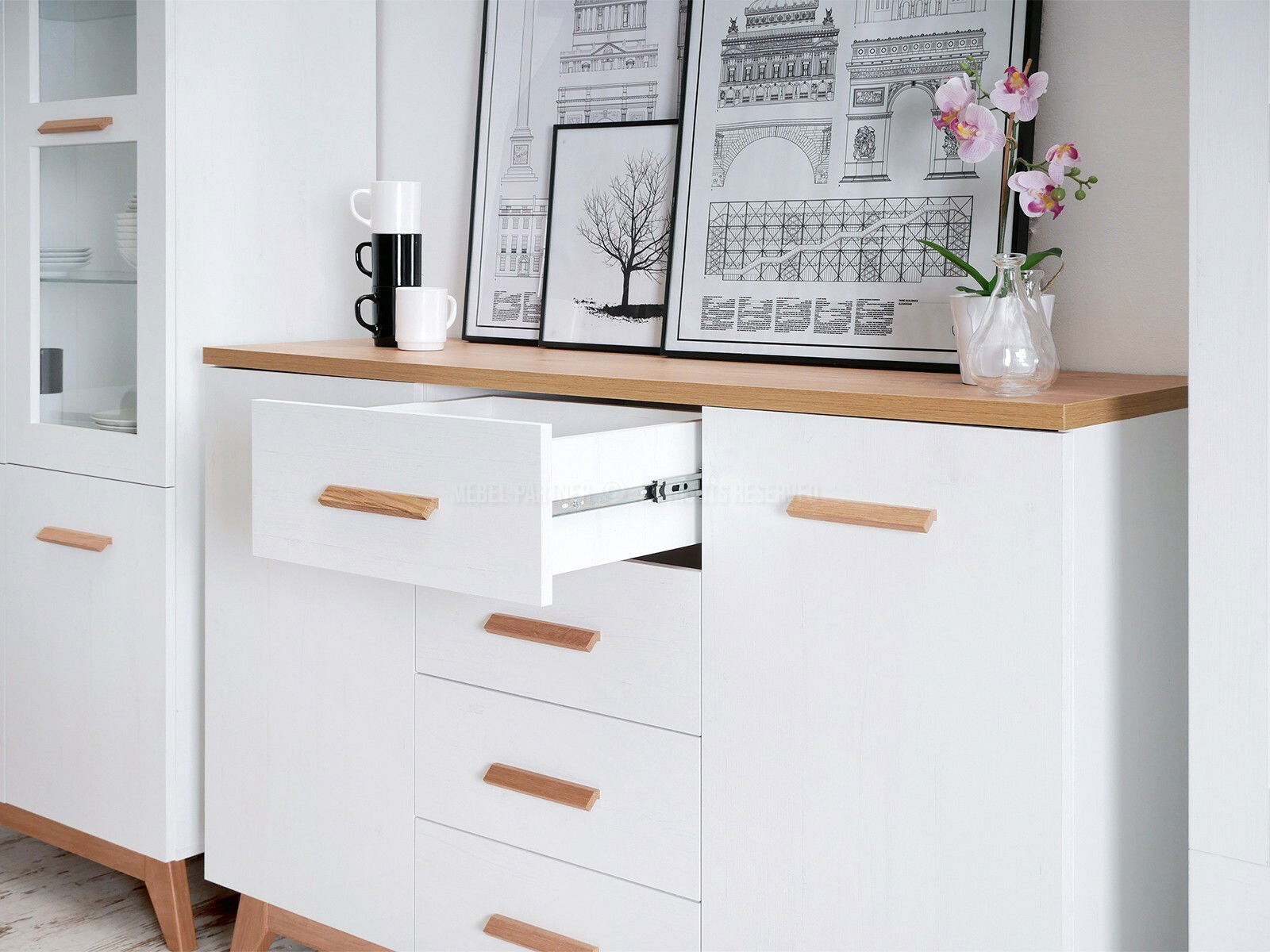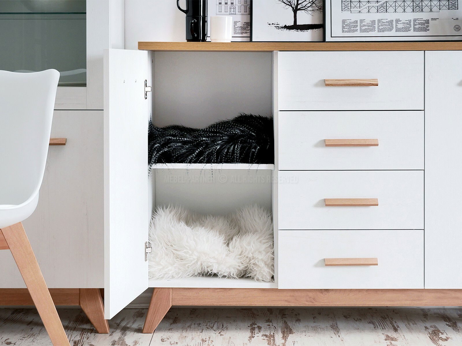 Jídelní stůl (pro 4 osoby) Kim (Bílá + Dub)
