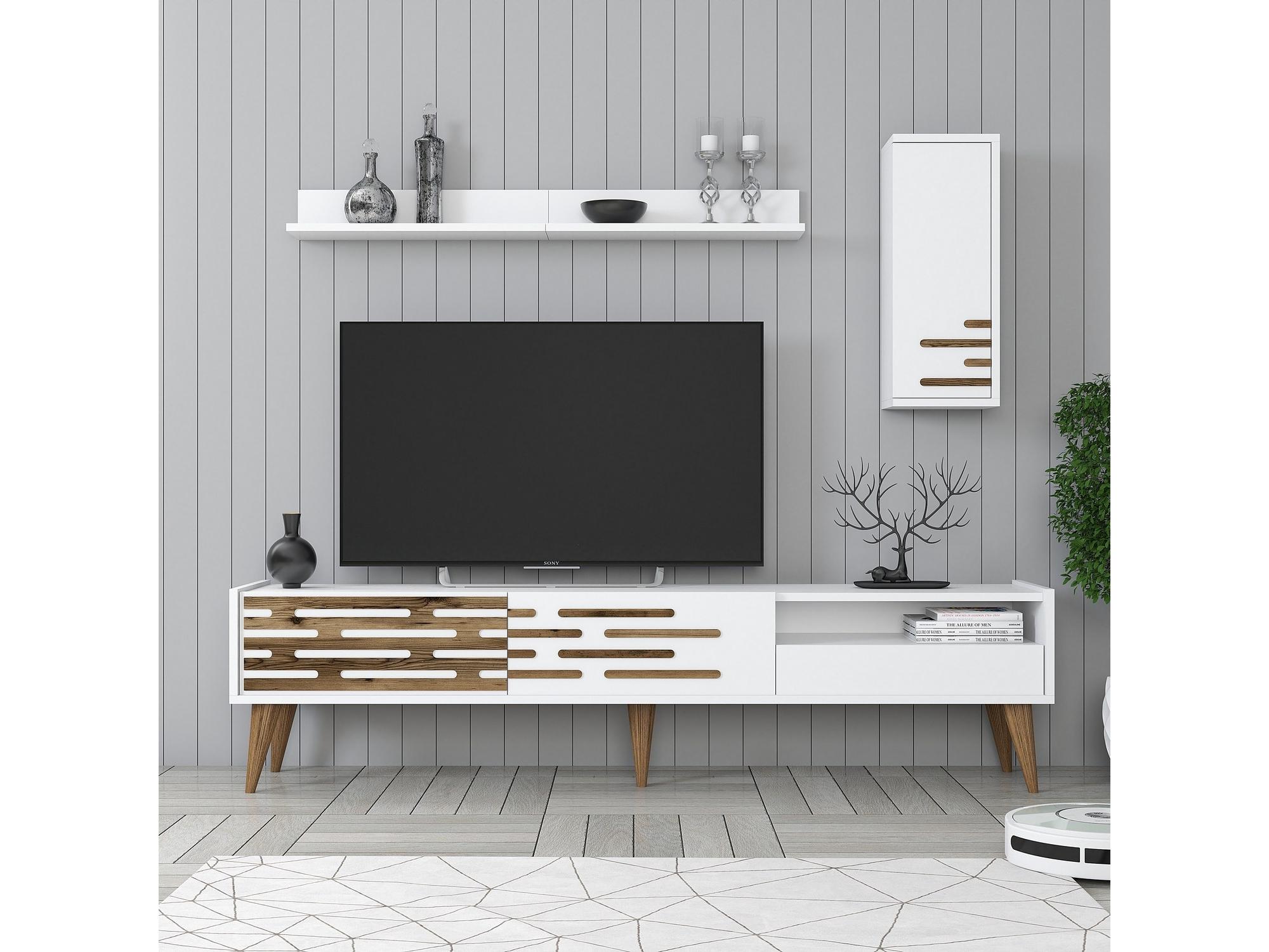 Nábytek do obývacího pokoje Animere II je ideální volbou pro ty, kteří hledají pohodlí a styl. Hledáte nábytek do pokoje, který dodá vašemu interiéru styl a eleganci? Souprava Animere byla vytvořena pro vás! Zlaté vysoké nohy, matný černý korpus a ozdobná vrchní deska s mramorovým vzorem upoutají pozornost. Tato jemná kombinace textur a barev působí mimořádně elegantně a nadčasově. Animere je funkční nábytek do obývacího pokoje, který se skládá ze tří základních prvků. Kromě prostorné stolové desky nabízí konferenční stolek další úložný prostor v podobě dvou šuplíků. TV stolek uklízí prostor v oblasti televizoru a skleněná vitrína senzačně vystaví předměty, které jsou pro vás důležité. Pokojový nábytek z této kolekce se vyznačuje elegantním designem a moderními řešeními. Zásuvky jsou vybaveny plnovýsuvy, zatímco skříňky se otevírají systémem "push to open", který usnadňuje každodenní používání. Rozměry: TV stolek Animere ARTV144: šířka: 144 cm, výška: 55 cm, hloubka: 37 cm, Vitrína Animere AWT97: šířka: 97 cm, výška: 122 cm, hloubka: 37 cm, Konferenční stolek Animere AL94: cm 16 mm silná laminovaná deska, ABS + papírové lemování hran, nohy FI 10 mm, práškově lakované ve zlaté barvě, bezúchytkový systém - prodloužený okraj + otevření zatlačením, zapuštěné panty, kuličkové kluzáky, na přední straně tvrzené sklo 4 mm a dvě skleněné police 4
