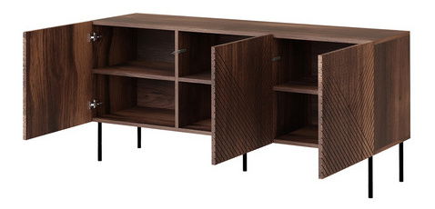 ZobrazitObývací stěna je ideální volbou pro ty, kteří hledají pohodlí a styl. Vytvořte interiér s nádechem jedinečného stylu a neotřelé elegance. Nábytek do obývacího pokoje Azynit je vynikajícím způsobem, jak oživit své okolí. Jednoduché jednotky obohacené o zajímavé detaily upoutají pozornost a dodají zařízení jedinečný charakter. Souprava obsahuje tři prvky: širokou komodu, pokojovou lavici a RTV skříňku. Tyto kousky jsou dokonalým základem pro úložné prostory a dekorace. Pokojový nábytek nabízí možnost vytvoření útulného televizního koutku, který je ideální pro filmové večery s rodinou. Každý model je osazen na vysokých kovových nožičkách, které umožní snadné čištění podlahy. Komoda a TV stolek jsou vybaveny systémem push-to-open. Rozměry: Komoda Azynit 150 3D široká: šířka: 150 cm, výška: 70 cm, hloubka: 42 cm, Azynit 190 4D RTV skříňka: šířka: 191 cm, výška: 58 cm, hloubka: 40 cm, Azynit pokojová lavic hloubka: 55 cm Provedení: Korpus: 16 mm silná laminovaná dřevotříska, čela: 16 mm silná MDF deska, fóliovaná, patinovaná a lakovaná, zadní část nábytku z 2,5 mm HDF desky, hrany: ABS, nohy: kov v černé barvě, bez úchytek, systém otevírá. Záruka: 24 měsíců