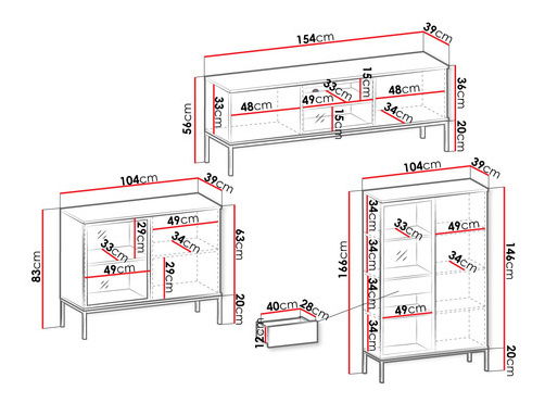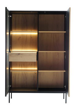 ZobrazitSestava nábytku do obývacího pokoje je ideální volbou pro ty, kteří hledají pohodlí a styl. Nábytek do obývacího pokoje Dornis I se vyznačuje funkčností a moderním designem. Skládající se ze tří prvků – komody, TV skříňky a vitríny – tato sestava dokonale zapadne do moderních interiérů, kterým dodá eleganci a styl. Minimalistický vzhled obývací skříňky zdůrazňuje modernistický styl pokojového nábytku. Díky systému otevírání „PUSH TO OPEN“ se dveře otevírají jemně a hladce. Doplňkové LED osvětlení dodává interiéru jedinečnou atmosféru a odhaluje uložené věci. Vysoká vitrína nabízí spoustu prostoru pro odkládání dekorativních věcí, jako je nádobí, suvenýry z dovolené nebo oblíbená sbírka knih. TV skříňka zorganizuje prostor v TV zóně. Pojme všechny kabely, desky a elektronické přístroje. Má také otevřenou polici pro set-top box nebo herní konzoli. Za pozornost stojí i nábytková čela. Skleněná dvířka dodávají lehkost a eleganci a vytvářejí jemný efekt transparentnosti, zatímco frézované prvky dodávají hloubku a charakter. Sestava se skládá z následujících prvků: Skříňka Dornis K104: šířka: 104 cm, výška: 83 cm, hloubka: 39 cm, TV skříňka Dornis RTV154: šířka: 154 cm, výška: 56 cm, hloubka: 39 cm, Vitrína Dornis WTSZ cm, hloubka: 39 cm Provedení: čela: 18 mm silná MDF deska + 18 mm hrubý hliníkový rám + tvrzené sklo, korpus: laminovaná deska o tloušťce 16 mm, ocelový rám práškově lakovaný černý, profil 18 mm, ABS hrany, panty HAFELE, kul HAFELE, žádné rukojeti, otevírací systém "PUSH TO OPEN", LED osvětlení v ceně Záruka: 24 měsíců